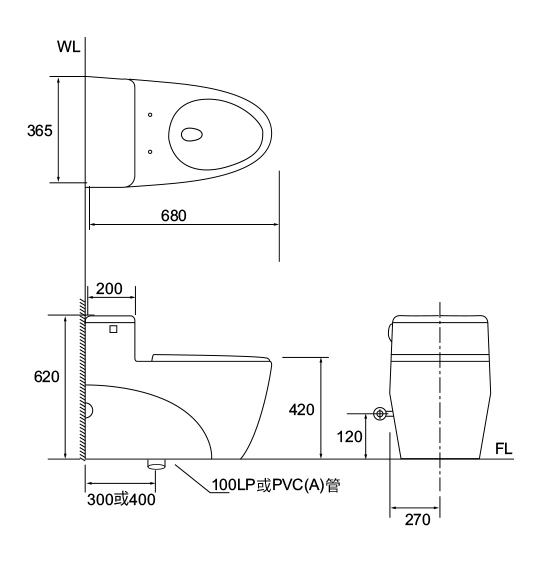 - 680x365x620mm